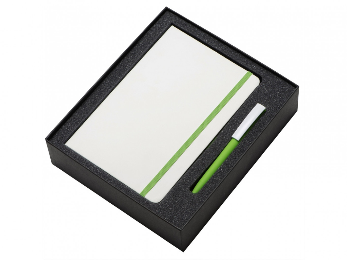 - материал: блокнот - искусственная кожа, бумага, ручка - пластик с покрытием soft-touch, коробка - кашированный картон