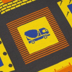 В каждой части общего рисунка, напоминающего лоскутное шитье, изображены главные символы строительной отрасли.