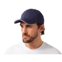 Бейсболка из очень плотного хлопкового твила. Бейсболка снабжена удобной металлической застежкой для более тщательной регулировки. Контрастный кант по козырьку и заднему хлястику.