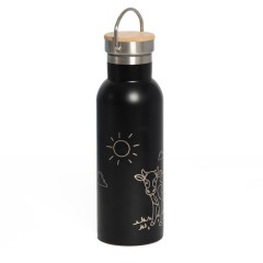 Бутылка для воды с двойными стенками из нержавеющей стали.Держатель на крышке для удобства переноски.Верхняя часть крышки из бамбука, отлично подходит для персонализацииБлагодаря двойным стенкам, температура напитка в бутылке будет в полной сохранности на протяжении 2-3 часов.Индивидуальная упаковка - коробка из крафтового картона