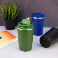Термокружка-непроливайка с двойными стенками с откидным клапаном для питьяКолба и корпус из нержавеющей стали.Матовая микрорельефная фактура корпуса достигается благодаря особому покрытию - powder coatingЭто специальное порошковое окрашивание, более прочное и долговечное,Сохраняет температуру напитков до 3-4 часов.Индивидуальная упаковка - коробка из крафтового картона