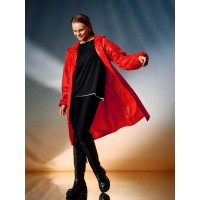 Плащ-дождевик из ткани таффета на кнопках с капюшоном.