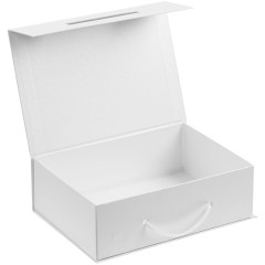 Коробка выполнена из переплетного картона, кашированного дизайнерской бумагой Majestic, с крышкой на магните.