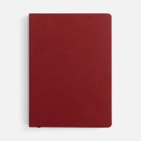 Ежедневник с твердой обложкой и тонированным обрезом, выполнен из материала Soft Touch, красный РР, дополнен ляссе в цвет обложки.