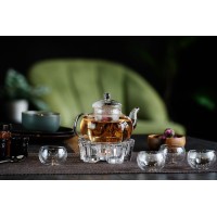 Создать атмосферу уюта и спокойствия дома или в офисе поможет чайный набор Teo. Изготовленный из боросиликатного стекла чайник позволит насладиться процессом раскрытия чайного листа во время заваривания и насыщенным цветом готового напитка. В подставке для подогрева предусмотрено место для чайной свечи, так что чай будет долго оставаться теплым. Подходит для заваривания всех сортов чая и травяных смесей. Легко моется, не впитывает посторонние запахи. Емкость чашек 50 мл. Емкость чайника 600 мл. Поставляется в индивидуальной упаковке.
