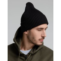 Однослойная шапка, выполненная резинкой 2x2.