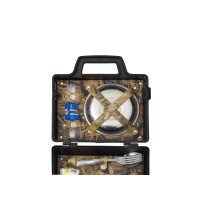 Подарочный набор для пикника. Этот тщательно подобранный комплект идеально подходит для тех, кто ценит качество и удобство во время отдыха на природе.В комплекте:- Тарелки (нерж. сталь)- 2 шт- Вилки (нерж. сталь)- 2 шт- Ложки (нерж. сталь)- 2 шт- Стопка (нерж. сталь)- 2 шт- Штопор- 1 шт- Емкости для соли и перца- 2 шт.- Платочки бумажные- 1 уп.Все аксессуары упакованы в пластиковый кейс и надежно закреплены ремешками из натуральной кожи, что обеспечивает удобство транспортировки и сохранность содержимого.