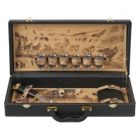 Погрузитесь в мир стиля и утонченности с нашим эксклюзивным подарочным набором. Этот тщательно подобранный комплект идеально подходит для тех, кто ценит качество и комфорт в своих приключениях.Все аксессуары упакованы в кейс из сплит-кожи, внутренняя отделка натуральная кожа с художественным выжиганием. Каждое изделие уникально, так как художественное выжигание может отличаться от представленного на фото, что придаёт набору особую индивидуальность. Все аксессуары надежно крепятся к кейсу кожаными ремешками на кнопке, обеспечивая удобство транспортировки и сохранность содержимого.В комплекте:- Фляжка 250 мл- 1 шт- Стопка (стекло) 25 мл- 6 шт- Штопор- 1 шт- Нож- 1 шт- Зажигалка- 1 шт