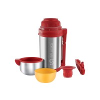 Прочные двойные стенки из высококачественной пищевой нержавеющей стали 18/8 с вакуумной изоляцией гарантируют, что ваш напиток или блюдо останется холодным в течение 36 часов и горячим до 30 часов.Гарантия 5 лет!Термос универсальный – подходит для еды и напитков.Крышку термоса можно использовать как чашку или миску, также в комплекте дополнительная чаша.Благодаря широкому горлу удобно обедать, не перекладывая еду в отдельную емкость. Термос трансформируется в питьевой за счет двойной пробки.Силиконовое кольцо помогает удерживать температуру и защищает от протекания, обеспечивая 100% герметичность. Удобен в транспортировке: оснащен складной ручкой и съемным ремешком для переноски на плече.