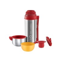 Прочные двойные стенки из высококачественной пищевой нержавеющей стали 18/8 с вакуумной изоляцией гарантируют, что ваш напиток или блюдо останется холодным в течение 40 часов и горячим до 34 часов.Гарантия 5 лет!Термос универсальный – подходит для еды и напитков.Крышку термоса можно использовать как чашку или миску, также в комплекте дополнительная чаша.Благодаря широкому горлу удобно обедать, не перекладывая еду в отдельную емкость.Термос трансформируется в питьевой за счет двойной пробки. Силиконовое кольцо помогает удерживать температуру и защищает от протекания, обеспечивая 100% герметичность.Удобен в транспортировке: оснащен складной ручкой и съемным ремешком для переноски на плече.
