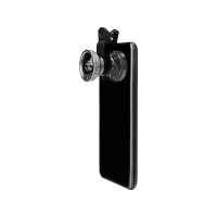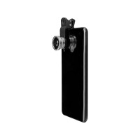 Универсальный набор из 3 линз (объективов) для смартфона. Подходит как для внешних, так и для камер «селфи». В наборе: широкоугольный объектив (0,4 х), объектив «рыбий глаз» (180°) разбирается на 2 части, одна из них - объектив для макросъёмки, зажим-прищепка для крепления объективов, инструкция, пластиковый бокс, защитные крышки для объективов, мягкий чехол.