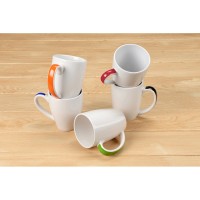 Не знаешь что дарить? Дари кружку! Многие выбирают подарок именно так. Объемная керамическая кружка на 320 мл - вещь действительно нужная и полезная. Яркая цветная полоса на ручке радует глаз, а на белый корпус можно нанести изображение: логотип компании или напоминание о событии. Прекрасный промо-сувенир для любой акции.