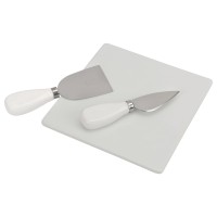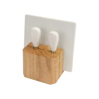 Набор для сыра Cheese Break: 2  ножа керамических на  деревянной подставке, керамическая доска