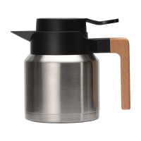 Вакуумный термокувшин с деревянной ручкой позволяет не только удобно заваривать кофе или чай, но и сохранять напиток горячим в течение долгого периода времени. Он выполнен из пищевой долговечной стали 304 марки, которая не подвержена коррозии и отличается повышенной прочностью.Двойные стенки с вакуумной изоляцией между ними защищают напиток от остывания, сохраняя температуру до 12 часов. Ручка из дерева имеет эргономичный дизайн, который позволяет не обжигаться при использовании.Устройство термокувшина весьма интересно: для того, чтобы налить в чашку кофе или чай, вам нужно нажать на клапан крышки, а когда напиток закончится – вы просто открутите ее, чтобы наполнить емкость новой порцией, и закрутите обратно. Благодаря такому устройству термокувшин более герметичен, чем стандартные чайники, и удерживает температуру настолько долго.* в данной моделе силиконовая вставка на дне термокувшина не предусмотрена.