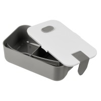 Ланч-бокс "Neo" можно брать с собой на работу, в школу, университет и командировки. Внутри прочной пластиковой емкости находятся снимаемая перегородка и вилка. Крышка с клапаном препятствует выпадению продуктов из бокса. Чтобы облегчить открытие контейнера, сначала выпустите воздух из него, потянув за силиконовый клапан на крышке. Деталь для фиксации крышки контейнера выполняет дополнительную функцию подставки для телефона, что особенно понравится тем, кто привык смотреть видео или читать книги во время перекуса. Ланч-бокс "Neo" можно разогревать в микроволновой печи, предварительно сняв крышку контейнера. Также разрешается использовать в посудомоечной машине и морозильной камере.Объем- 1л.