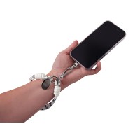 Описание Брелок-браслет "Bohemian" c металлическим держателем для телефона, бело-черный