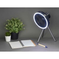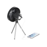 Многофункциональный вентилятор Jon имеет 3 режима обдува и подсветки: слабый, средний и интенсивный. Таймер позволяет запланировать отключение вентилятора с отсрочкой от 1 до 5 часов.Световой индикатор отображает процесс зарядки вентилятора, позволяющий определить, когда устройство полностью заряжено или скоро разрядится (время зарядки 3-4 часа).Вентилятор оснащён съёмной решёткой, что позволяет легко очистить его от пыли и загрязнений. Ручка, расположенная на корпусе, поможет удобно перенести вентилятор при необходимости.В комплект помимо штатива также входит карабин для подвешивания, что может быть очень полезным, например, в палатке.Ещё одна незаменимая функция для кэмпинга - возможность заряжать от вентилятора другие устройства (как от пауэрбанка), мощность аккумулятора - 3600 мА/ч.- три режима ночника и обдува;- таймер для отложенного отключения;- мощность: 4 Вт;- время зарядки: 3-4 ч;- уровень шума: 50 дБ;- съёмная решётка для удобства ухода за вентилятором;- индикатор заряда;- карабин для подвешивания и ручка для переноса.