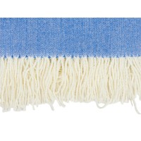 Большой размер этого мягкого плотного пледа позволяет использовать его как одеяло и как покрывало для вашего интерьера. По бокам плед украшен бахромой. В комплекте идет упаковочная синяя лента, на которой можно сделать нанесение вашего логотипа.