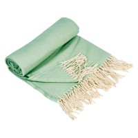 Плотный мягкий плед из натурального хлопка украшен бахромой. Можно использовать как теплое одеяло или как покрывало для украшения интерьера.