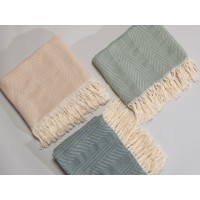 Плотный плед из натурального хлопка с бахромой по бокам. Можно использовать как одеяло или как покрывало для украшения интерьера.