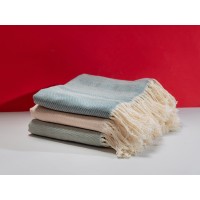 Плотный плед из натурального хлопка с бахромой по бокам. Можно использовать как одеяло или как покрывало для украшения интерьера.