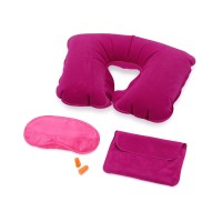 Замечательный дорожный набор включает в себя надувную подушку, маску на глаза и беруши, все это упаковано в специальный чехол. Приятная на ощупь поверхность набора обеспечит комфортный сон в любой обстановке.