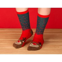 Рождественские носки прекрасно подойдут на роль подарка, который создает праздничное настроение. Этот набор состоит из двух пар, которые упакованы в мешочек из натурального хлопка. Одна пара украшена мягкими пушистыми мордочками рождественских оленей, а принт на второй изображает сапожки Санта Клауса.  Ткань -- смесь хлопка, полиэстера и спандекса, что обеспечивает носкам износостойкость, а мягкая широкая резинка – удобную посадку по ноге. Мешочек-упаковку можно брендировать по вашему желанию.Размер носков 36-39.