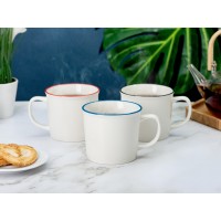 Кружка из костяного фарфора с выраженным рельефным ободком, окаймленным цветной контрастной полосой. Цвет полосы можно органично сочетать с цветом нанесенного логотипа, что придаст дизайну конечного продукта цельность облика. - удобная ручка- цветная контрастная полоса, которую можно сочетать с вашим лого- самый популярный объем — 360 мл