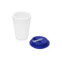 Описание Пластиковый стакан Take away с двойными стенками и крышкой с силиконовым клапаном, 350 мл, белый/синий