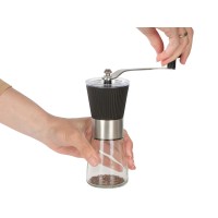 Ручная кофемолка поможет полностью погрузиться в процесс приготовления этого ароматного напитка, наслаждаясь запахом перемалываемых зерен. Можно регулировать степень помола, что полезно при приготовлении разных типов кофе. Удобная ручка делает процесс перемалывания простым, не требующим приложения большого количества сил, а рифленая поверхность верхнего резервуара — не дает ладоням скользить.- прозрачная крышечка для мониторинга количества зерен внутри- удобная ручка- стильный минималистичный дизайн- можно сочетать с другими товарами бренда- регулирование степени помола- подготовит зерна без использования электричества, что может быть очень полезно в походе