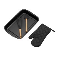 Комплектность противень 41 х 27,5 х 4,3 см (внутр. Размер 33 х 22 см) , рукавица 16 х 29,5 см, лопатка 28 см, венчик 30 см