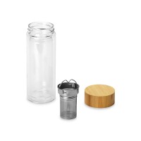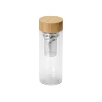 Стеклянный термос из стекла с двойными стенками и ситечком 320 мл "Badachu" в чехле, прозрачный (P)