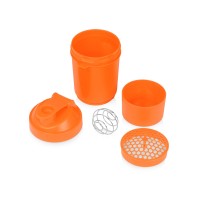 Шейкер для спортивного питания - это один из необходимых аксессуаров для спортсменов и людей, ведущих активный образ жизни. В нем можно приготовить протеиновый коктейль или фруктовый напиток. Шейкер классической формы, он удобно лежит в руке, к донышку прикручивается емкость для смешивания (таблетница), в которой можно хранить спортивные добавки: протеиновый порошок, витамины и другие концентраты. Внутри колбы имеется пластиковая сетка, чтобы процеживать спортивный напиток, а также металлический размешиватель, который растворяет порошок в напитке без комочков. Объем - 400мл. Шейкер изготовлен из пищевого пластика, он герметичен и легко моется. Шейкер имеет приятное на ощупь матовое покрытие, но подверженное незначительным дефектам (царапинам). Шейкер с нанесением - это классный и полезный спортивный подарок для коллеги, руководителя и сотрудников компании.