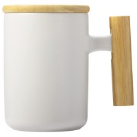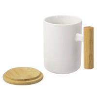 Кружка с ручкой и крышкой из каучукового дерева Jeny, белый