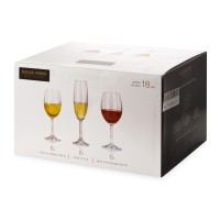 Подарочный набор из 18 бокалов для красного, белого и игристого вина. В наборе по 6 шт. каждой модели. Поставляется в индивидуальной цветной коробке.