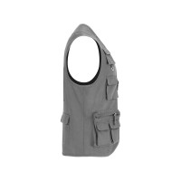 Рабочий жилет1 застежка на молнию2 V-образный вырез горловины3 3 нагрудный кармана с клапаном и застежкой на липучку4 верхний карман с многофункциональным кольцом5 два боковых кармана на молнии в рамку с двумя кармана с клапаном и застежкой на липучку6 два задних кармана с клапаном7 горловина, пройма и низ обработаны кантом