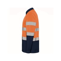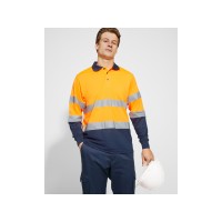 Техническая рубашка поло с длинными рукавами. Планка на 3 пуговицы. Воротник и манжеты в рубчик 1 x 1. Две горизонтальные светоотражающие полосы на туловище и рукавах. Ткань предотвращает зацепление.