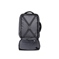 Уникальный и удобный рюкзак-трансформер может легко превратиться в элегантную сумку для деловых поездок благодаря двум вариантам использования.- большое отделение с эластичными фиксирующими ремнями для одежды и карабином для ключей- отделение для ноутбука с органайзером- спереди 2 кармана на молниях- USB выход- на спинке потайной карман на молнии- регулирующиеся по длине лямки- светоотражающий элемент и карман на молнии для карточек и других ценных мелочей на лямке- ремень для крепления на чемодан- дышащая спинка