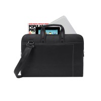 Сумка для ноутбука до 15.6''. • Ультратонкая и легкая сумка для ноутбуков до 15.6".• Сумка выполнена из плотной искусственной кожи и имеет утолщенные стенки для защиты ноутбука от случайных ударов и царапин, а также от пыли и влаги.• Два дополнительных внутренних отделения помогут удобно разместить все необходимые аксессуары, планшет до 10.1" и документы. • Также имеется внутренний карман на молнии для бумажника, паспорта.• Контрастная, светлая подкладка облегчает поиск необходимого гаджета.• Ручки из оригинальной, цельной стропы закреплены через всю внутреннюю поверхность сумки, что значительно усиливает конструкцию сумки.• Регулируемый, съемный плечевой ремень.