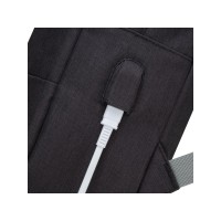 • Городской рюкзак из высококачественной, водоотталкивающей ткани с элементами защиты "антивор":- Молнии основного и переднего отделения спрятаны под тканевым загибом;- Плотный материал с утолщенными стенками для защиты ноутбука.• Основное отделение для ноутбука с вертикальной загрузкой, имеет мягкие стенки и ремень для надежной фиксации ноутбука до 15.6".• Два внутренних кармана на дне рюкзака - один для ёмкости с водой, второй для повербанка.• На боковой стороне рюкзака имеется USB-порт для подключения портативного внешнего аккумулятора к смартфону.• Внешний скрытый передний карман на молнии для хранения аксессуаров, также оборудован панелью-органайзером для хранения визитных карт, флэш-накопителей, смартфона.• Двойная застежка молния для удобного доступа к устройству.• Удобная мягкая ручка для переноски и наплечные ремни со смягчающими подкладками помогут чувствовать себя комфортно в самом долгом путешествии.• Специальная система крепления ремешков на липучке закрепляет их и создает дополнительное удобство.