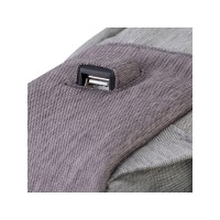 • Городской рюкзак из высококачественной, водоотталкивающей ткани с элементами защиты "антивор":- Молнии основного и переднего отделения спрятаны под тканевым загибом;- Плотный материал с утолщенными стенками для защиты ноутбука.• Основное отделение для ноутбука с вертикальной загрузкой, имеет мягкие стенки и ремень для надежной фиксации ноутбука до 15.6".• Два внутренних кармана на дне рюкзака - один для ёмкости с водой, второй для повербанка.• На боковой стороне рюкзака имеется USB-порт для подключения портативного внешнего аккумулятора к смартфону.• Внешний скрытый передний карман на молнии для хранения аксессуаров, также оборудован панелью-органайзером для хранения визитных карт, флэш-накопителей, смартфона.• Двойная застежка молния для удобного доступа к устройству.• Удобная мягкая ручка для переноски и наплечные ремни со смягчающими подкладками помогут чувствовать себя комфортно в самом долгом путешествии.• Специальная система крепления ремешков на липучке закрепляет их и создает дополнительное удобство.