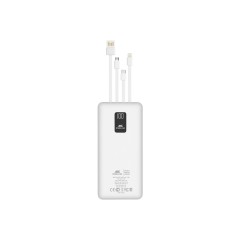 RIVACASE VA2220 (20000 мАч) внешний аккумулятор с дисплеем и встроенными кабелями, белый, 12/24