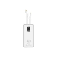 RIVACASE VA2220 (20000 мАч) внешний аккумулятор с дисплеем и встроенными кабелями, белый, 12/24