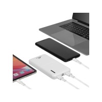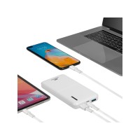 Функция сквозного заряда: Можно одновременно заряжать внешний аккумулятор и подключенное к нему устройство. Время перезарядки внешнего аккумулятора: 3 часа (при использовании QC/PD зарядки). Емкости достаточно для 3 зарядок среднего смартфона. Подзарядка ноутбуков по разъему Type-C