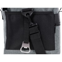 Вместительная сумка-холодильник со специальной конструкцией дна, предотвращающей протекание наружу жидкости от размораживания. Поверхность сумки всегда остается сухой. Основное отделение и карман спереди на молнии. Сбоку 2 сетчатых кармана. Съемный плечевой ремень регулируется по длине. Короткие ручки фиксируются вместе застежкой-липучкой. В комплекте открывалка для бутылок.