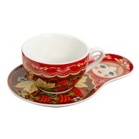 В наборе вы найдете необычную чайно-кофейную пару с подставкой в виде русской «Матрешки», которая является одним из главных символов России и чай "Малина с мятой" травяной, 70 г.Набор поставляется в большой деревянной коробке в виде сундука с замочком.