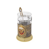 Описание Подстаканник с хрустальным стаканом и ложкой РОССИЙСКИЙ-Л, золотистый/прозрачный