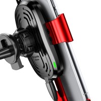 Корпус холдера выполнен из высококачественного ABS-пластика,устойчивого к перепаду температур и механическим повреждениям. Вконструкции предусмотрено три фиксатора, которые при помощипружинного механизма, надёжно удерживают устройство и гасят любыевибрации и удары, возникающие при поездках по плохой дороге.Контактная поверхность фиксаторов закрыта мягкими накладками,решающими проблему возможного появления потёртостей на телефоне.Под платформой Baseus Wireless Gravity, на которую устанавливаетсясмартфон, спрятан шарнирный механизм, позволяющий поворачиватьустройство на 180 градусов в двух плоскостях.