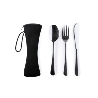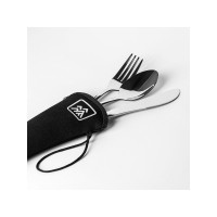 Набор столовых приборов из нержавеющей стали в практичном неопреновом футляре. Включает в себя вилку, нож и ложку, идеально подходящие для того, чтобы брать их с собой куда угодно.