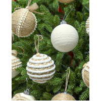 Елочные шары, созданы в аутентичном, деревенском стиле, украшены натуральным джутом и бусинами.